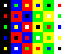 Als Einstieg (damit ich mich in meinem eigenen Programmcode zurechtfinde nehme ich eine schon erstellte Graphik und versuche mich mit Variationen. Das Motiv ist ja in Schwarz- Weiß. Ich versuche mich mal mit Farbe und ordne die Graphik mehrfach neben- und untereinander an. Also z.B. als 2x2, 3x3, 10x5 Matrix oder noch größer.
