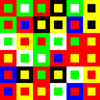 Als Einstieg (damit ich mich in meinem eigenen Programmcode zurechtfinde nehme ich eine schon erstellte Graphik und versuche mich mit Variationen. Das Motiv ist ja in Schwarz- Weiß. Ich versuche mich mal mit Farbe und ordne die Graphik mehrfach neben- und untereinander an. Also z.B. als 2x2, 3x3, 10x5 Matrix oder noch größer.